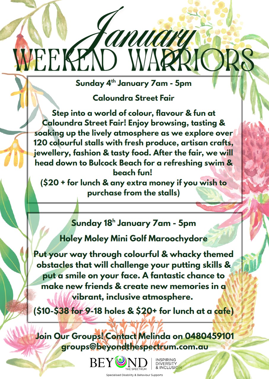 Group attendance is billed at a 1:1 to 1:3 ratio rate depending on the participants support needs and the activity supervision requirements. Groups are a combination of free and paid events, free events can sometimes have an additional out-of-pocket expense that is not covered by the participants NDIS funding.